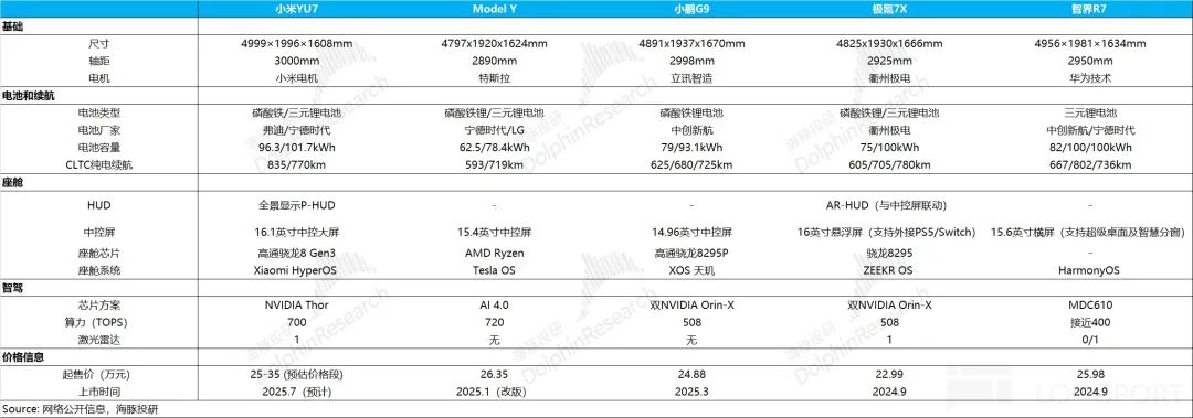 上周小米举行的新品发布会,详细介绍了即将发布的新车 YU 的情况(具体发布会内容可以参考《小米(纪要):“国货教父” 新车 YU7 驾到,“外来和尚” Model Y 真危了?》。结合当前小米 YU7 公布的信息,可以看出公司将特斯拉的 model Y 作为主要竞品,主要面向于 25-35w 的新能源 SUV 市场。