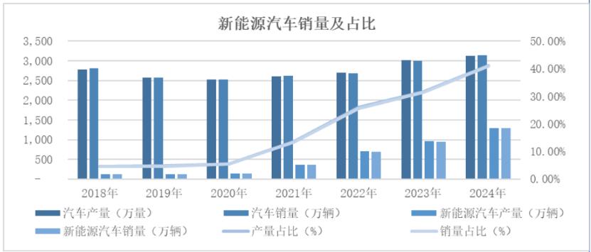 根据中国汽车工业协会统计数据,2022年至2024年,我国传统燃油汽车销量分别为1997.74万辆、2059.88万辆、1857.10万辆,占我国汽车销量的比例分别为74.36%、68.45%、59.08%,占比有所下滑。