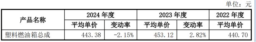值得注意的是,与汽车产业链的大部分公司一样,世昌股份也面临产品价格年降的风险。2024年,公司塑料燃油箱总成的平均单价为443.38元,同比下降了2.15%。