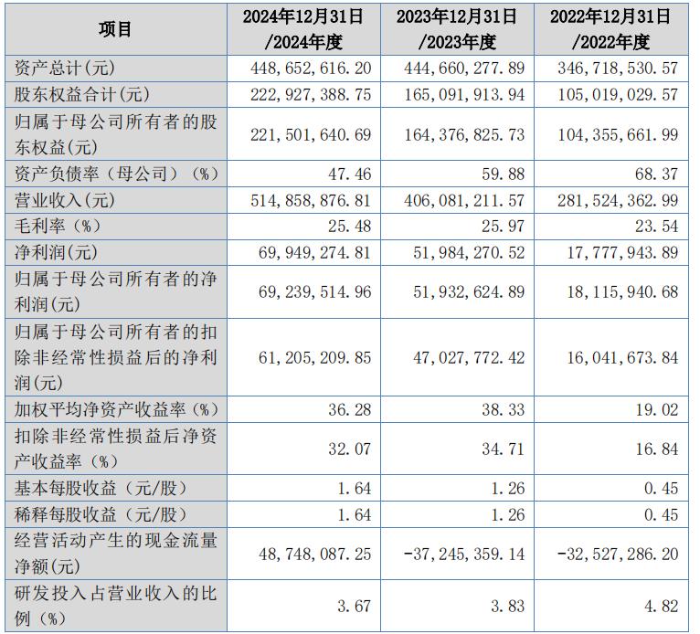 招股书称,2025年1-6月公司预计实现营业收入2.81亿元,同比增长22.05%,预计扣非后的归母净利润为2990.63万元,同比增长17.85%。
