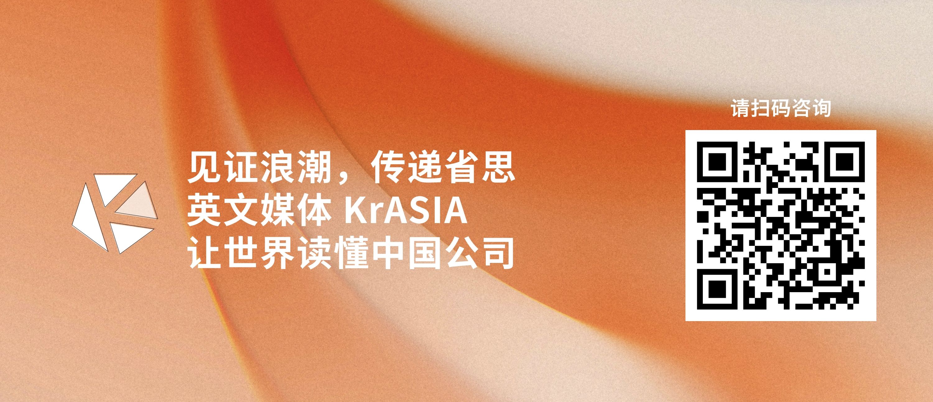 在全球经济复杂格局的当下,英文报道不仅是向海外客户和消费者传递价值主张的重要手段,也是企业在世界范围内的认知沉淀。英文媒体 KrASIA(kr-asia.com)致力于向世界介绍中国商业和文化。英文网站约60%的读者为东南亚核心国家的商业人群。KrASIA 通过优秀的搜索引擎优化,专业的英文内容和可靠的社交媒体矩阵,以及全球顶级信息数据平台彭博终端和道琼斯 Factiva 等外部收录平台,帮助中国公司提升全球品牌。如果您的公司对英文传播有相关需求,或者希望与 KrASIA 合作提供出海服务,欢迎扫描下方的二维码或点击“此处”填写表单,获取 KrASIA 媒体服务刊例和工作人员的联系方式。