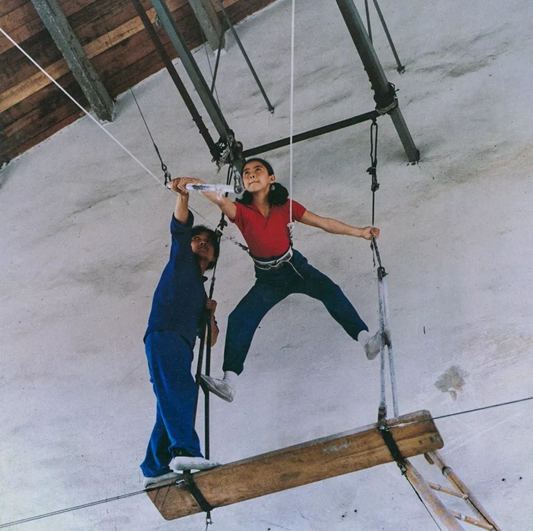 在空中练杂技的上海杂技团少女