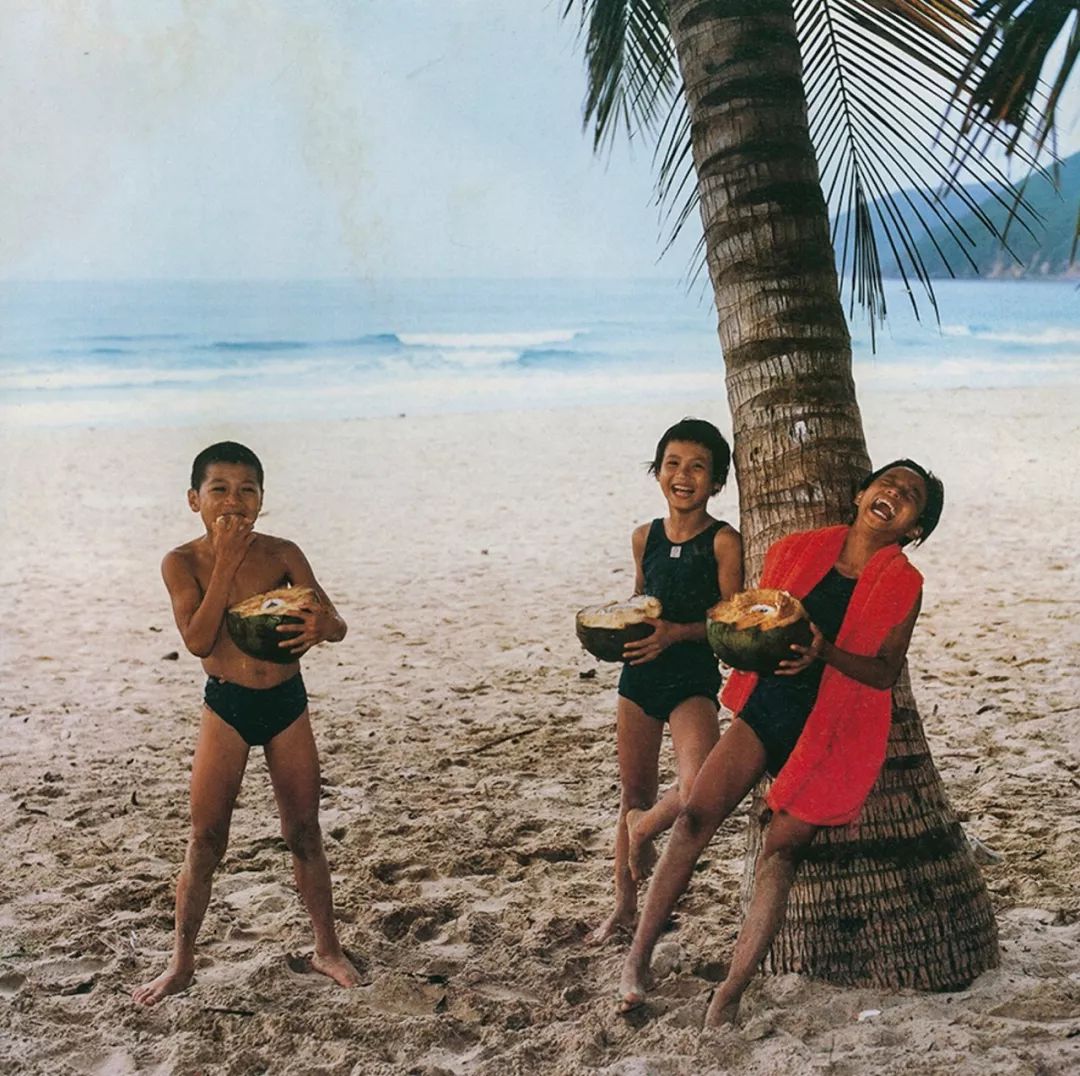 去到了海南岛,端着椰子、穿着泳衣、开怀大笑的小朋友,有一种夏威夷一样的热情。