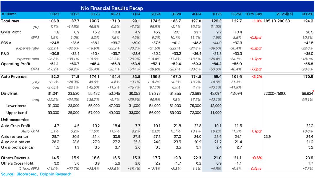 蔚来汽车 (NIO.N) 于北京时间2025年6月3日美股盘前,港股盘后发布了 2025年第一季度财报。一季度业绩虽然很烂,但二季度指引在边际改善,来详细看一下: