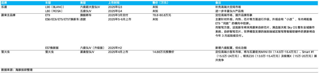 ② 从今年的车型pipeline来看,不太具备能继续走量的车型: