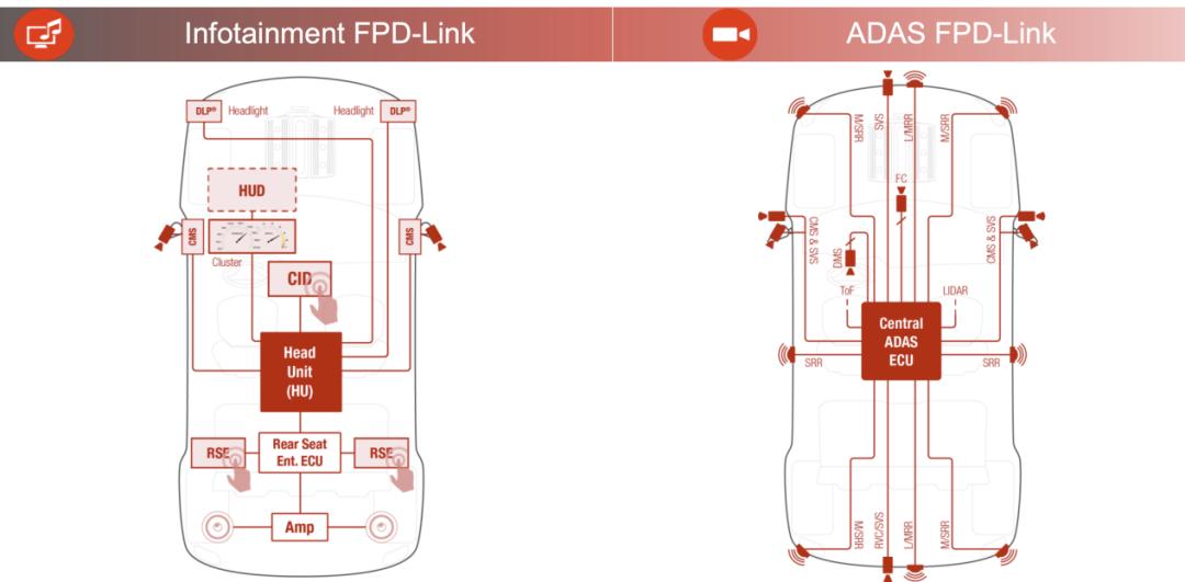 在汽车应用中,FPD-Link 通常用于导航系统、车载娱乐系统、倒车摄像头以及其他先进的驾驶辅助系统。