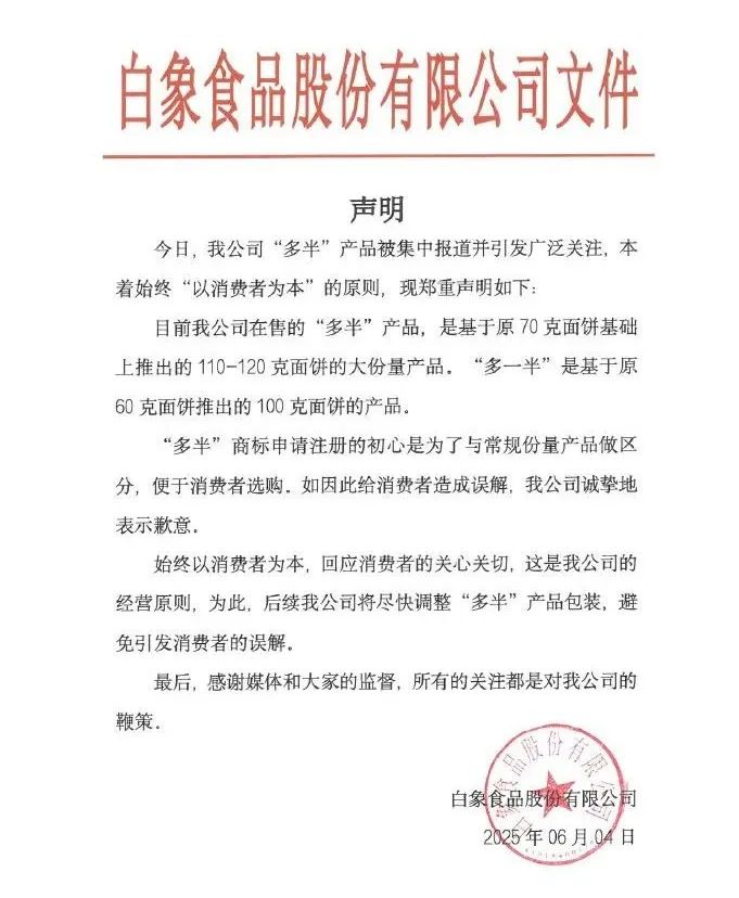 白象很快回应,说“多半”是注册商标,原意是标识产品系列,帮助区分选择。不是欺骗,如果有误解,那我们“致歉”,并承诺“整改包装”。平心而论,这种回应已经是国产品牌里少见的“情绪控制型选手”了。