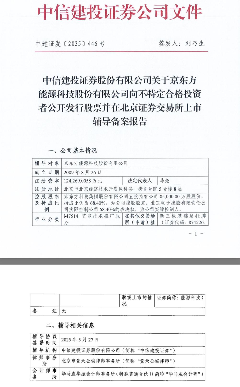 6月6日,今年2月挂牌新三板、市值超1470亿元的京东方的控股子公司——京东方能源科技股份有限公司(下称:京东方能源),在北京证监局进行辅导备案登记,向北交所上市发起冲刺,辅导机构为中信建投证券,计划在2025年12月完成相关辅导工作。