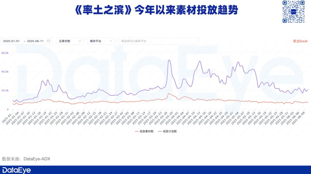 不仅如此,DataEye-ADX显示,今年以来《率土之滨》在素材投放量方面有显著增加,