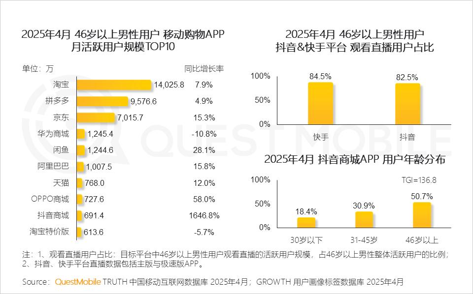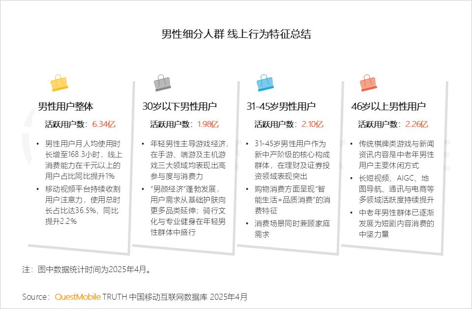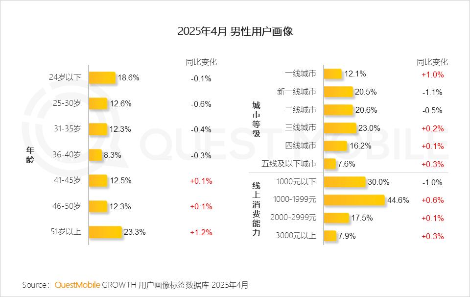 QuestMobile 2025男性消费市场洞察:41岁以上用户占比近半,城市分布出现分化,代际习惯差异巨大