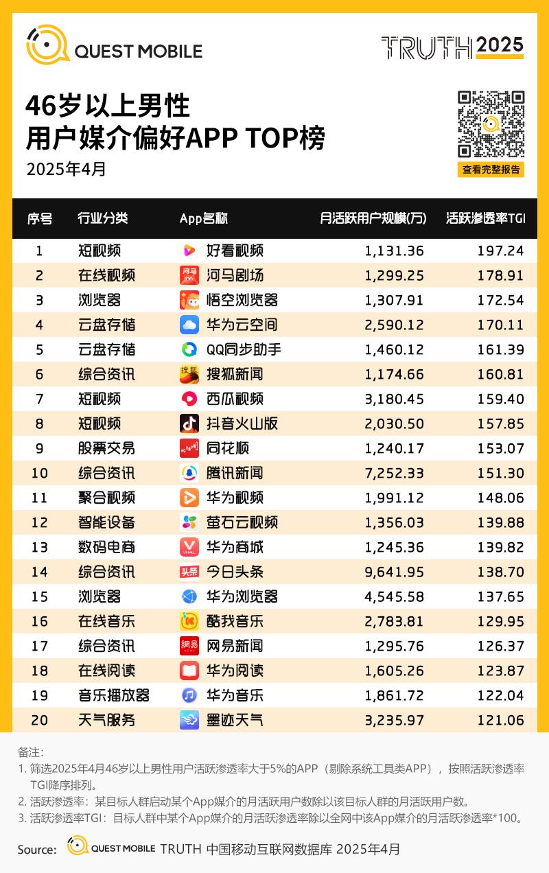 46岁以上男性用户:对棋牌游戏与新闻资讯表现出强烈偏好,并逐渐发展为短剧内容消费的中坚力量