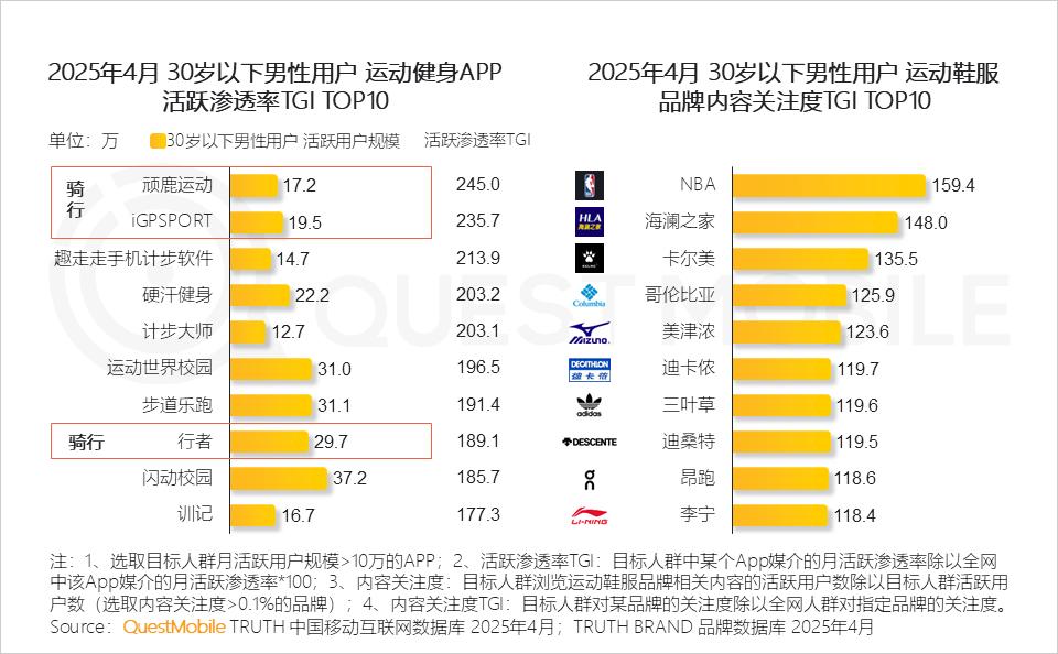 6、在运动健身领域,骑行文化在年轻男性群体中盛行,同时热衷于专业健身,对专业运动品牌有较高偏好