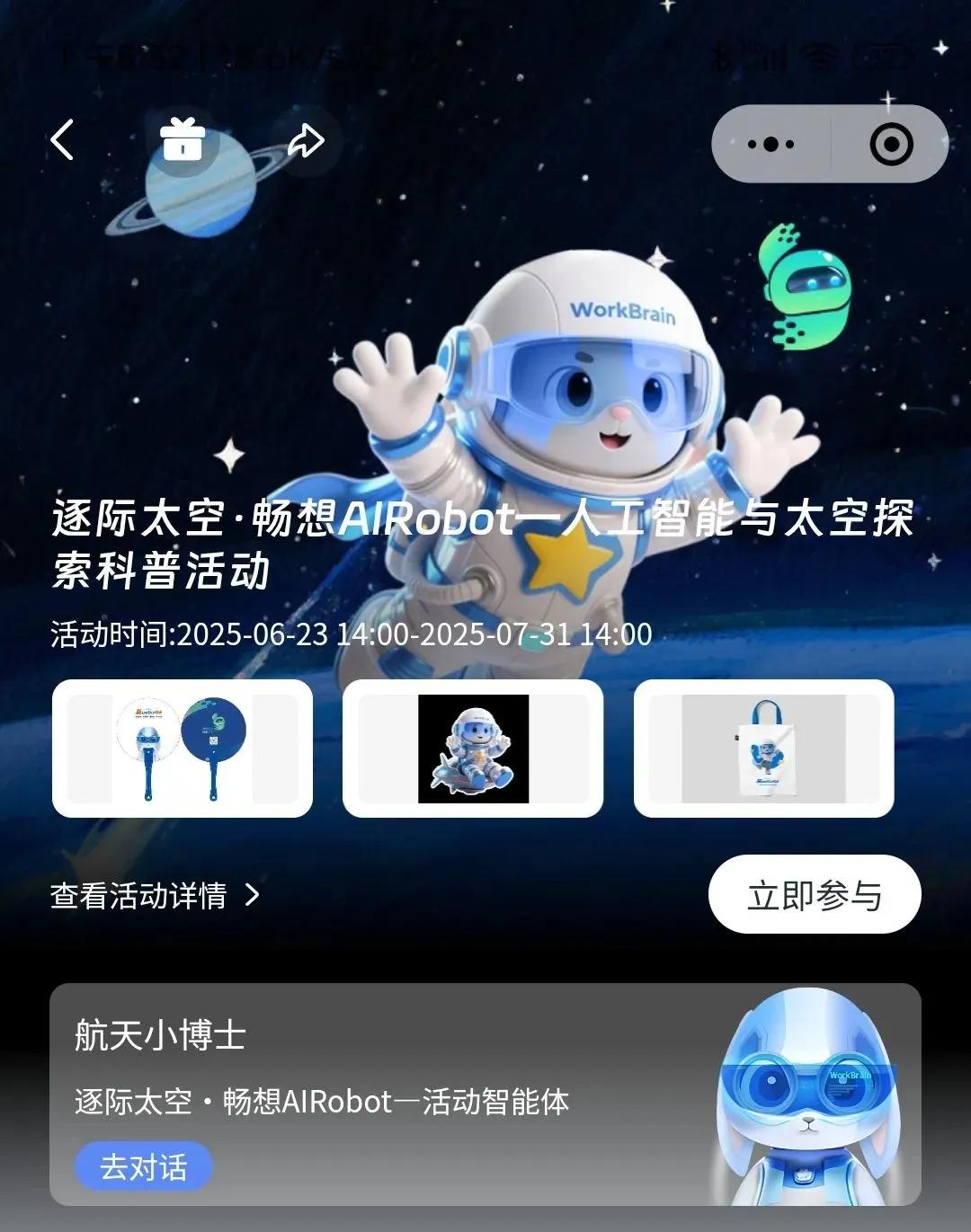 李慧介绍,6月28日,由四川省人工智能行业协会、四川省人工智能研究院主办,成都智算中心、华存智谷、成都明途科技、中国-欧洲中心、成都高投电子集团等单位联合举办的“逐际太空·畅想AIRobot”人工智能科普展第一阶段的公益展览将会拉开帷幕,「智小途」为这场展览提供"AI航天小博士"观展向导功能。