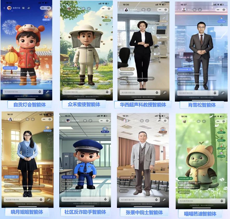 “在训练好智能体后,用户可以通过小程序,快速把数字人分身房间服务分享给其他用户体验或应用,同时使用小程序端口还可以无感嵌入公众号、视频号等链接,方便地应用于政务服务、文旅活动、企业宣传等方面,使得基于新交互的数字人分身模式能和微信生态实现全闭环。”