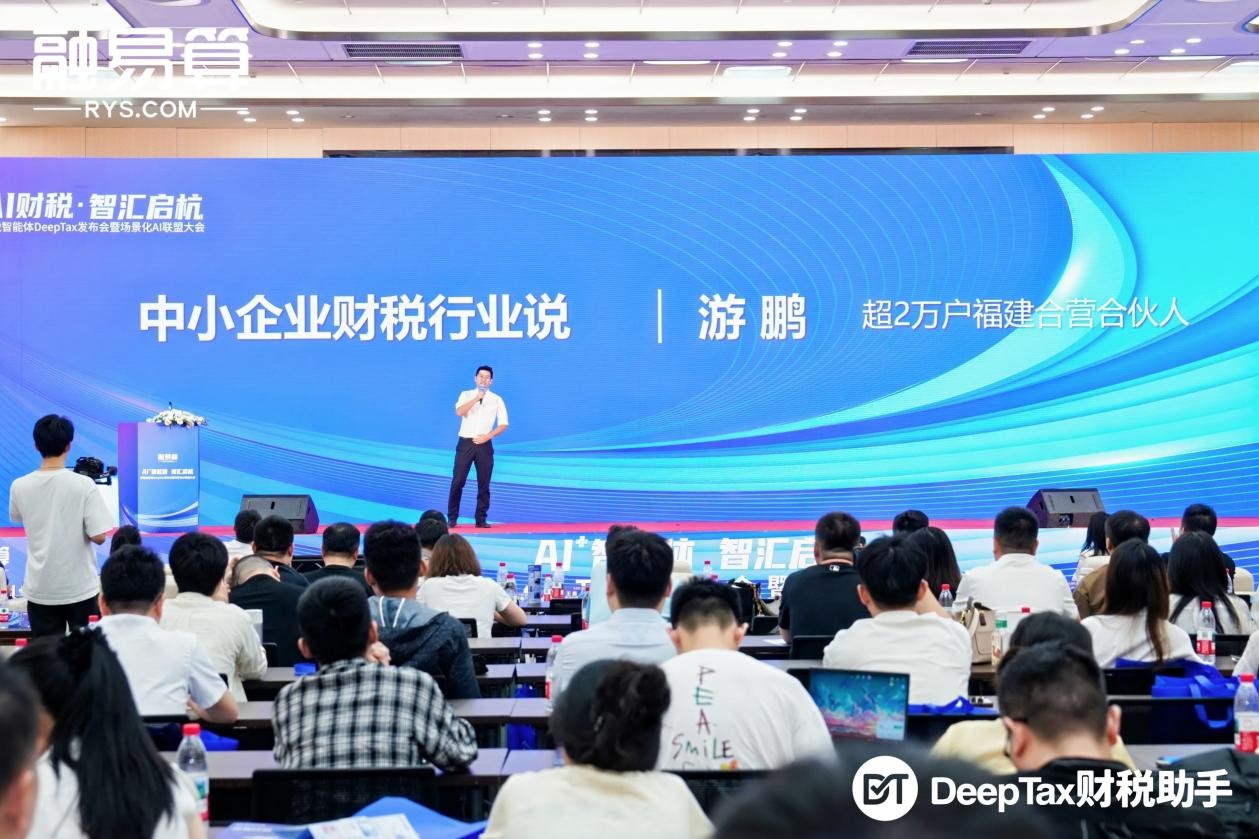 在“中小企业财税行业说”环节,超2万户福建合营合伙人游鹏作了“拥抱AI浪潮,共启财税智能新纪元”的分享发言。他提到过去十年,行业高速发展,但繁荣背后,代账公司和广大中小企业共同面临着难以逾越的困境,效率、合规与人才“三重之门”。融易算这样深耕财税场景的AI智能体解决方案的发布,绝非一场炫技的表演。它是一声嘹亮的号角,宣告财税服务智能化时代的正式到来!AI带来的不仅是工具的迭代,更是一场从底层思维到商业模式的全方位革命。未来的财税服务竞争,核心在于“谁更懂AI,谁更能用好AI”。呼吁行业借助融易算等平台提供的智能体,加速传统会计转型。未来的财税精英,是“财税专家+AI训练师+企业顾问”的三位一体。