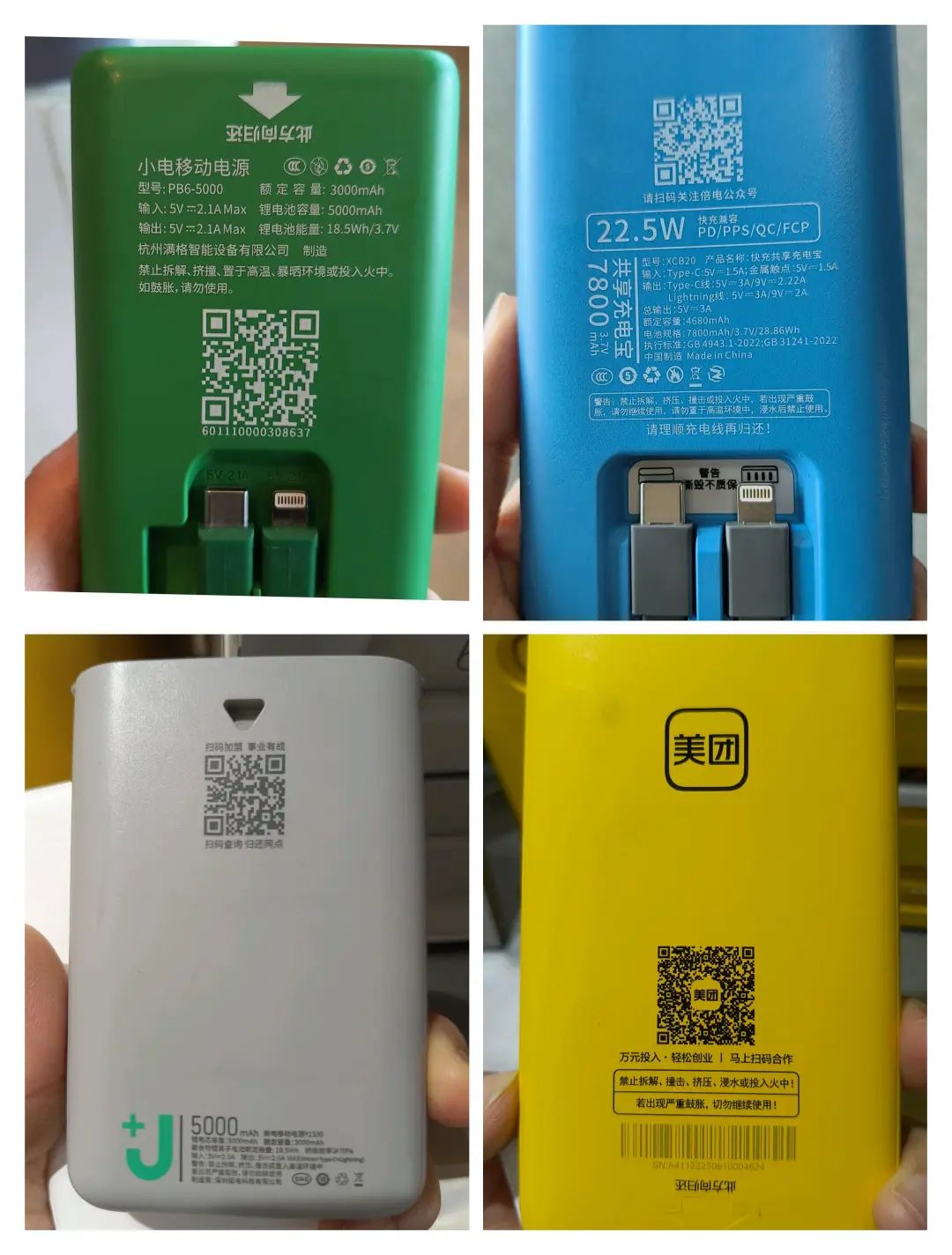 财联社记者近日在广州一些主流商圈、会议展馆看到,美团、街电、小电、倍电等的共享充电宝平台中,仅小电、倍电提供的充电宝产品有3C标识。记者自己购买的3款充电宝中,仅2024年8月份购买的一款某主流品牌的充电宝有3C标识,其它两款均是在2020年前购买,无3C标识。