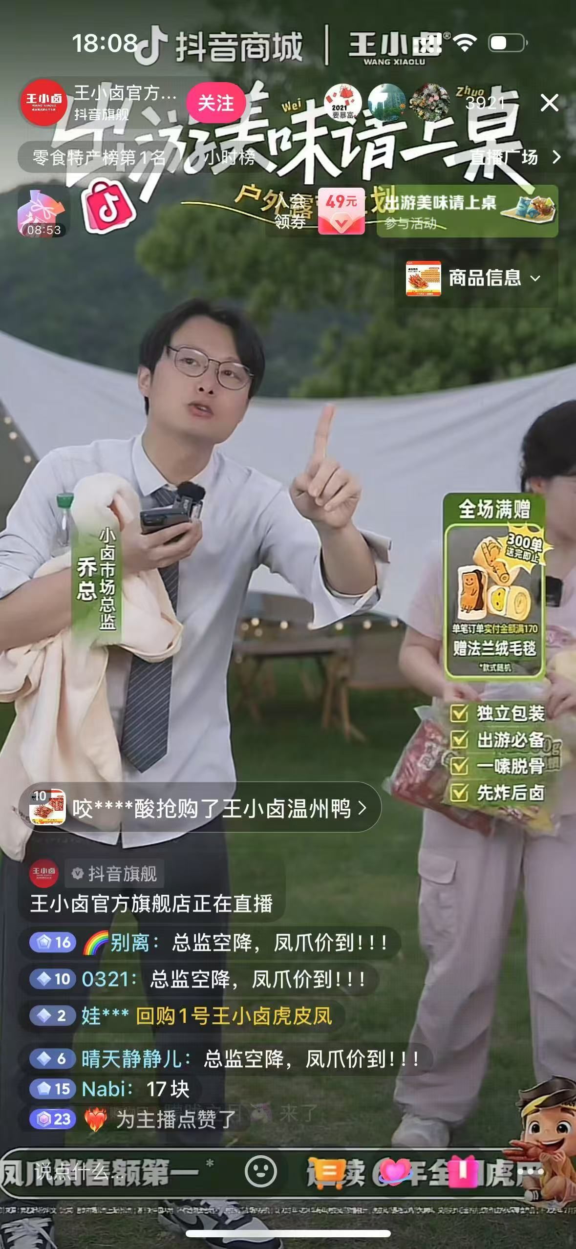 抖音平台高倍速增长的数据背后,王小卤在抖音平台玩法全面升级成为增长破局的关键支点。自营店播通过会员日等多类超级大场直播吸引了众多用户涌入,直播间峰值在线人数高达4000+人,单日GMV可达240万。618大促期间,直播间流量爆发更加凶猛,收官日创下430万的单日销售新高。
