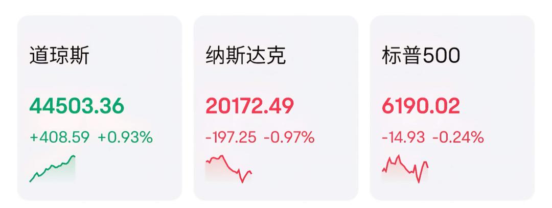 截至收盘,标普500下跌0.1%,道指上涨0.9%,纳指下跌0.8%。