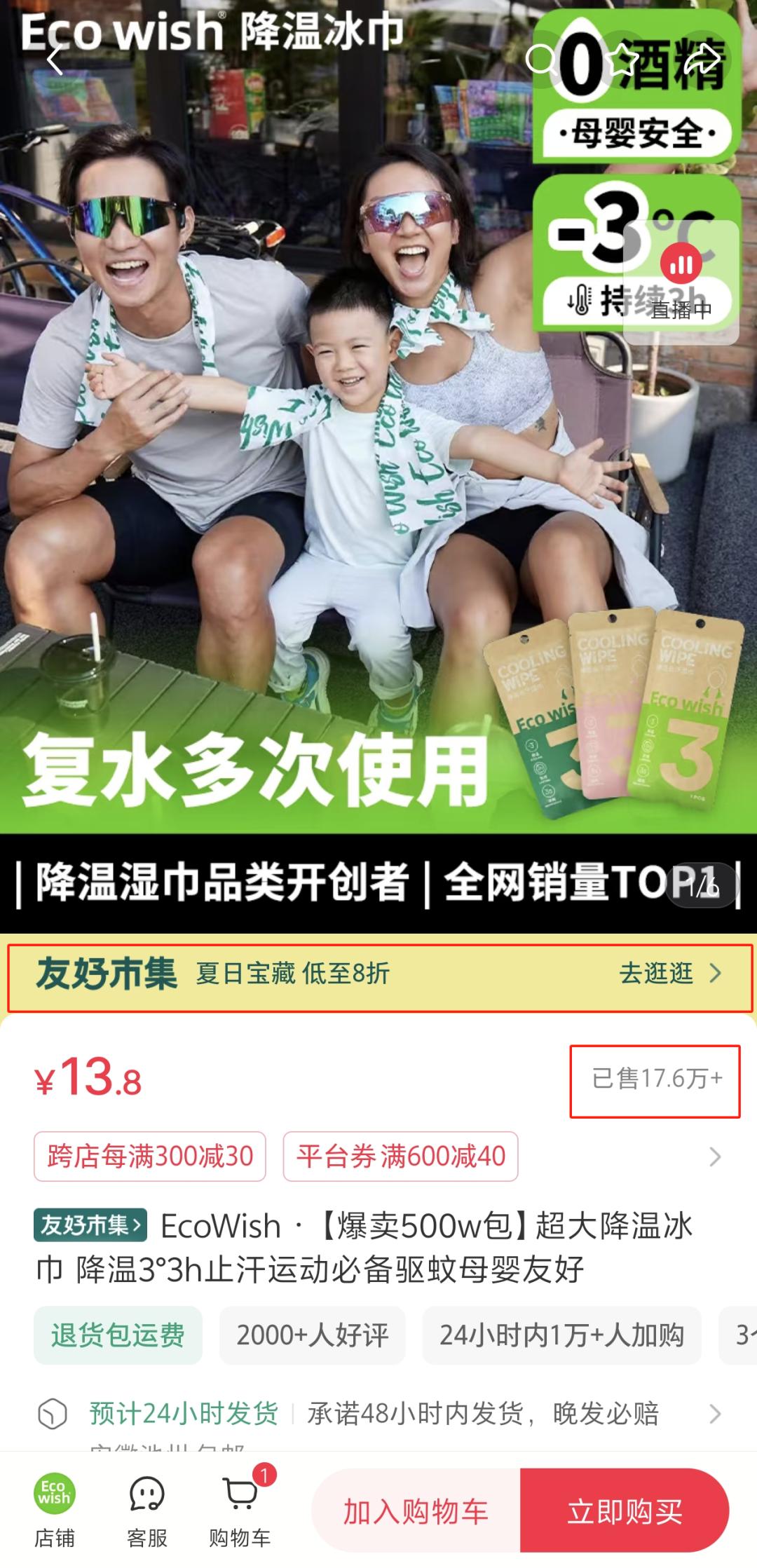 凭借一款降温湿巾打开局面的家护品牌「Ecowish」,其主理人也强调,如果把友好市集当做一个促销节点,然后再搭配上常见的促销话术,或者是买赠等等一系列措施去运营,消费者「一定受不了」,因为每个平台都这样。