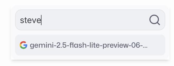 另外如果在模型列表中直接搜steve,会出现gemini-2.5-flash,原因不明。