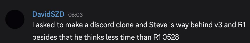 其他网友也表示,steve的表现比v3和R1差远了,而且思考时间也比R1要短。