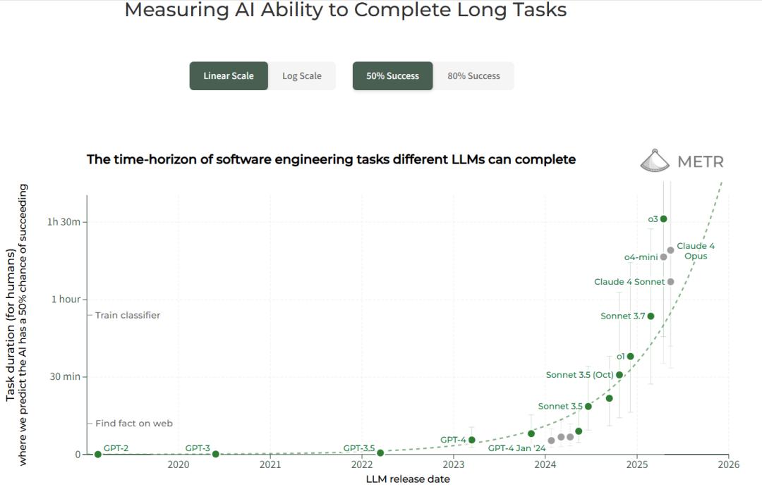 图片来源: https://metr.org/blog/2025-03-19-measuring-ai-ability-to-complete-long-tasks/