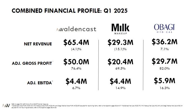 今年一季度,Waldencast公司净收入录得6540万美元(约4.7亿元),同比下降4.1%;调整后毛利润为5000万美元(约3.5亿元),调整后毛利率为76.4%。