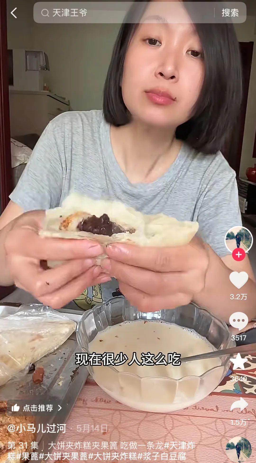 比起其他地方厨子只做、吃播光吃,华北网红可以完成“吃做一条龙”,充满仪式感和科研精神。硬糖君爱看的“小马儿过河”,是和“团团记”并肩的天津碳水教母。若她来教荣叔吃炸糕,没有三个根本没法完成试菜。“吃第一个炸糕要白嘴吃,先吃炸糕本身的味道”“接着吃大饼夹果篦配咸豆浆,转换一下味蕾”“来一角饼里面夹半块炸糕,践行经典天津卫吃法”。