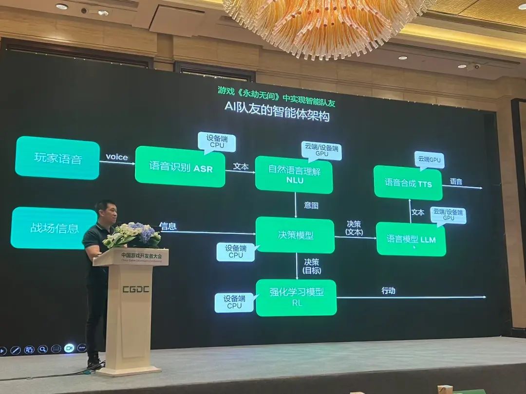 腾讯互娱副总裁余睿超在演讲中提到,生成式 AI 的浪潮正逐渐扩展到体验端,为游戏带来更大的想象空间。