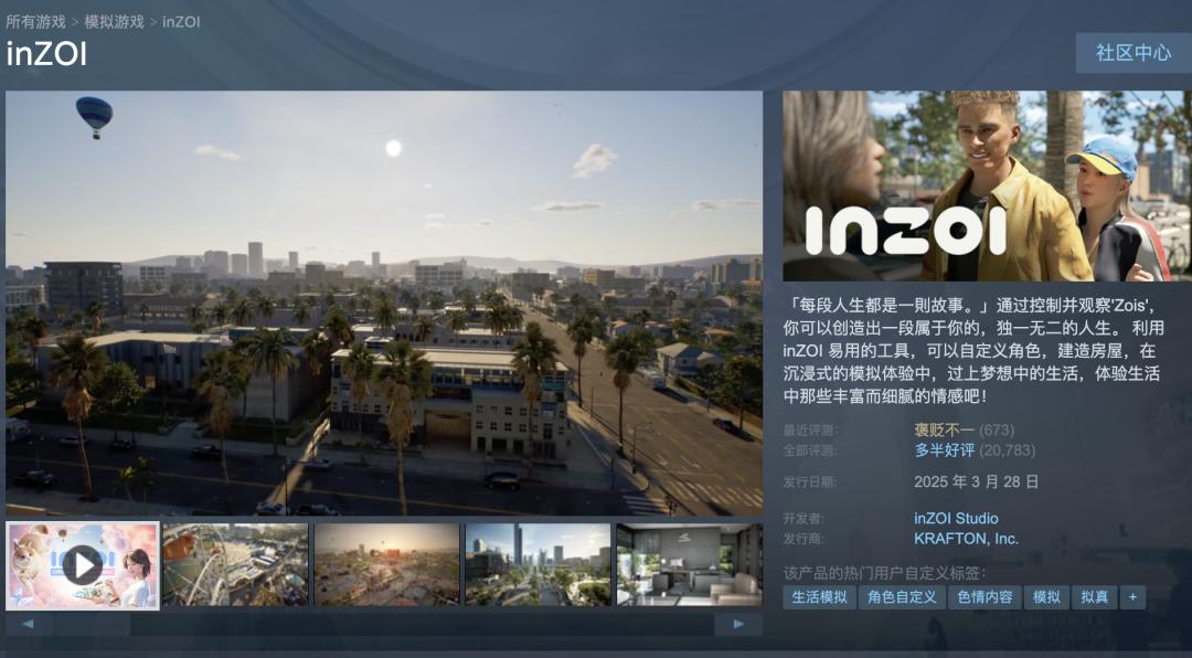 这种「让虚拟世界更真实」的努力,在《InZOI》里更进一步,整个虚拟世界的运转逻辑由 AI 驱动:每个角色都有自己的「人生目标」,他们会自主找工作、谈恋爱、吵架、搬家,甚至「内卷」。你不再是在「玩一个游戏」,而是在观察一个「数字社会」的演化。