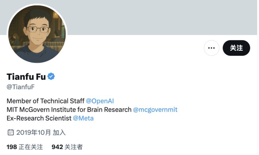 Elaine还专门@了若干伙伴。其中有一位Tianfu Fu,他也是GPT-5的核心人员,但公开资料不多。目前只知道他有莱斯大学的博士学位,今年一月才加入OpenAI。在此之前是Meta的一员。
