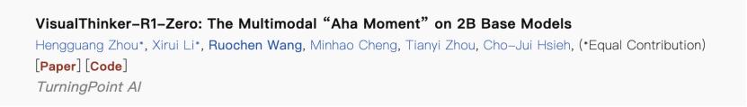TurningPoint AI最引人关注的成果是,在未经监督微调的2B模型上,见证了基于DeepSeek-R1-Zero方法的视觉推理“啊哈时刻”,属全球首次。随后这项发现也引发了圈内跟进。