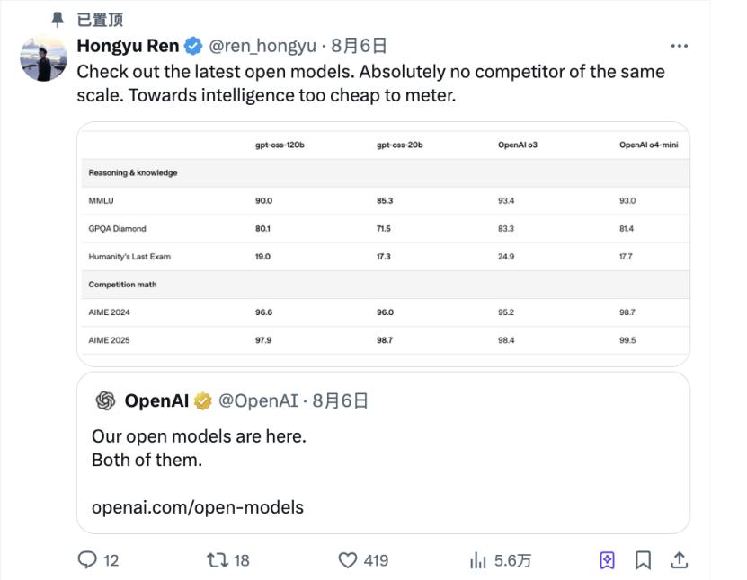 而在GPT-5前两天发布的gpt-oss开放权重推理大模型也是任泓宇在OpenAI的重要工作,对于OpenAI如此重要的两个项目都有他的身影,也怪不得小扎要氪金非要把他从OpenAI抽过来。
