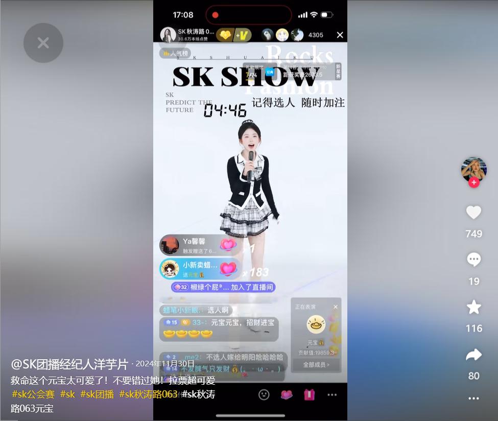 在表演类型上,除了常规的男团女团,古风、二次元、Hip-Pop等类型也纷纷出现。而在传统的“打PK”之外,各种主题和互动玩法也衍生出来,比如玩游戏、演短剧,直播带货……团播的一片红海,也吸引了B站、小红书等新平台纷纷加入。