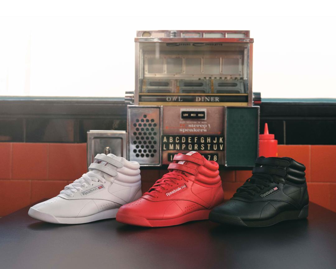 无数美国女性投入健身潮流,健美操成了不少女性的心头好,就如电影《某种物质》中一样,80年代,美国电视和录像带中,最受欢迎的就是跳着健美操的女主播。锐步察觉到了这一趋势,在1982年推出了全球首款女性健美操鞋Freestyle,靠着脚踝支撑系统和亮眼的设计引爆市场,成为当时最为畅销的运动鞋之一。
