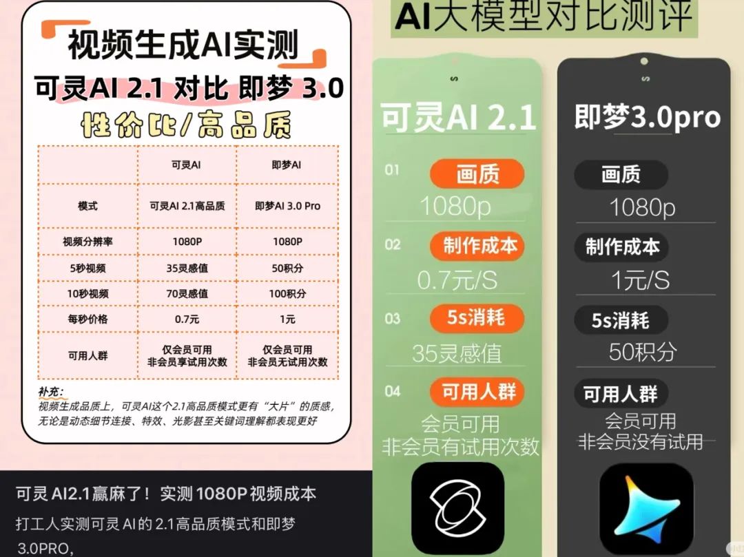 小红书上也有很多AI使用者发帖讨论可灵AI 2.1版本和即梦AI 3.0 PRO的技术对比,有些用户认为可灵AI在AI技术上已经达到了六边形战士的水准,而即梦AI的技术相对落后,画质、细节和动态效果都不太理想。综合来看,快手在可灵AI的技术上打了一个漂亮的翻身仗,以硬核的技术实力,暂时超越了字节旗下的即梦AI。