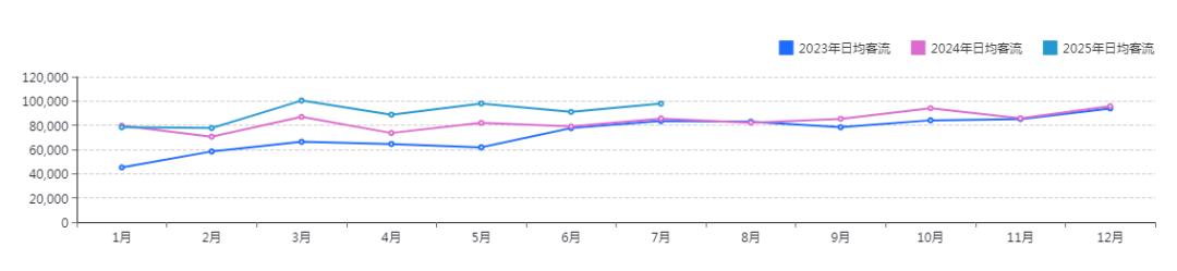 尽管身陷债务泥潭,但皇庭广场凭借“港人北上”消费热潮维持着高人气。据赢商大数据显示,皇庭广场在2024年品牌平均进驻率93%,日均客流超8万人次,港客占比达45%以上。