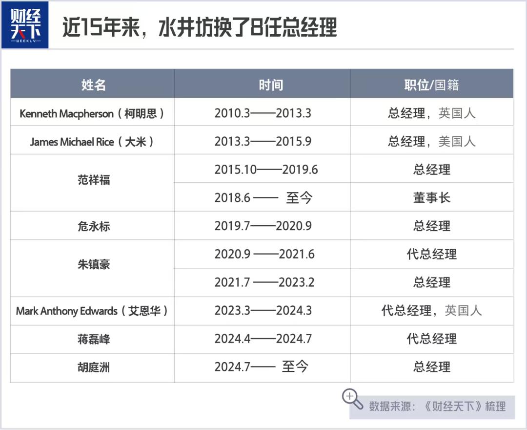 2023年2月底,朱镇豪以“个人健康”原因辞职后,英国人艾恩华开始代为行使水井坊总经理职责。没想到,仅一年后,水井坊的副总经理、财务总监蒋磊峰就接棒艾恩华,成为代总经理。不过,蒋磊峰也没干多久,任职还不到四个月,就被胡庭洲取代了。