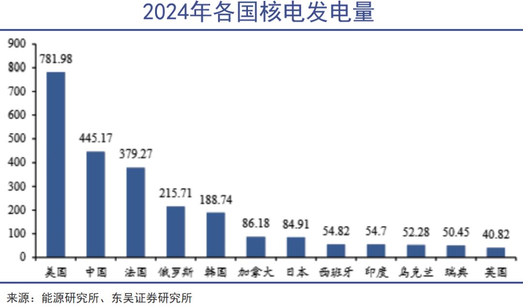 以美国为例,大部分核电机组都建成于上世纪70-80年代,现有在运核电机组94台,总装机容量为96.95 GWe。美国能源部(DOE)曾表示,要实现2050年净零排放目标,核电总装机容量还需要增加200 GWe。
