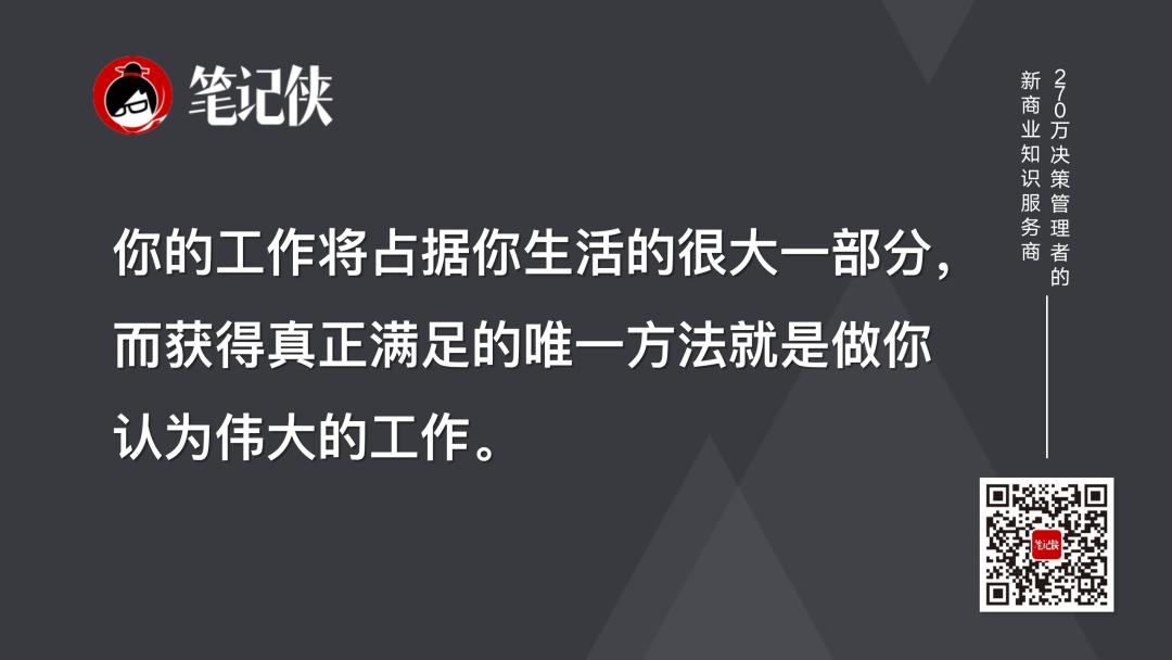 “你的工作将占据你生活的很大一部分,而获得真正满足的唯一方法就是做你认为伟大的工作。”