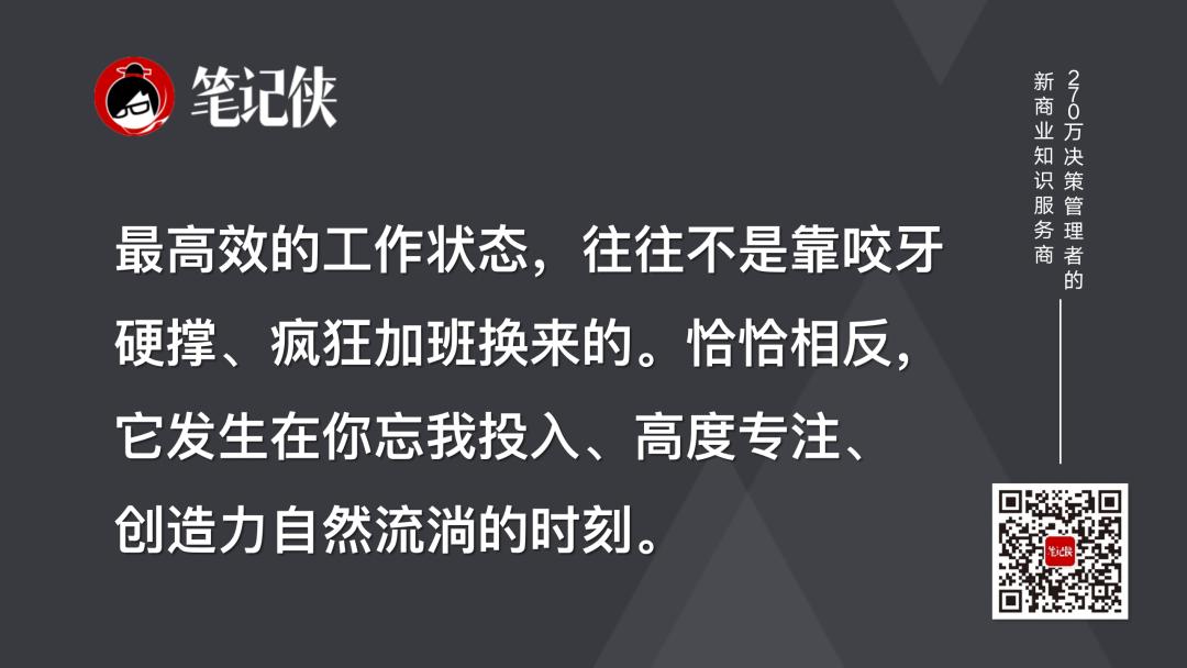 这就是乔布斯在反复打磨iPhone界面时、马斯克在调试火箭引擎时可能进入的状态——十倍效能的源泉。