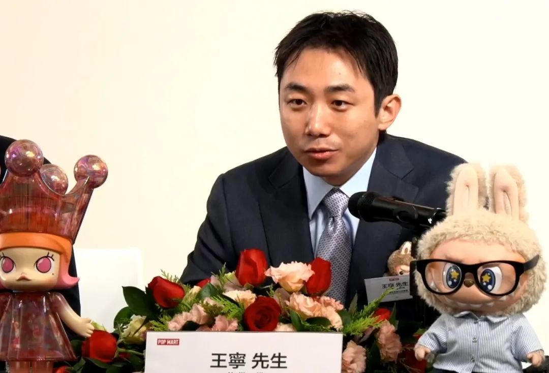 王宁的西装上别着一只迷你版Labubu,半掩在名牌之后——那是泡泡玛特即将推出的新品。他摘下这只毛茸茸的棕色玩偶向全场展示时,投资者和分析师一阵轻呼。