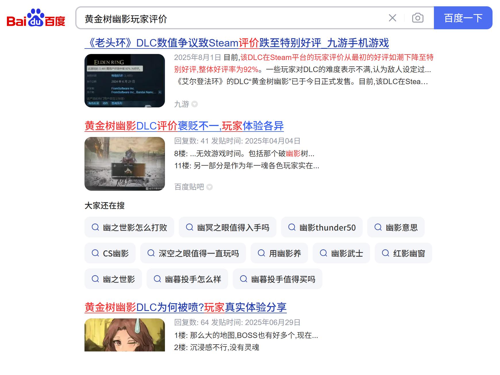 就像《艾尔登法环》,作为2022年TGA年度最佳游戏,其出色的美术风格、深厚的剧情、多样的流派打击体验以及高探索度的开放世界,都足以让玩家沉浸其中。但2024年6月21日发布的DLC《黄金树幽影》,却收获了多数玩家的差评。