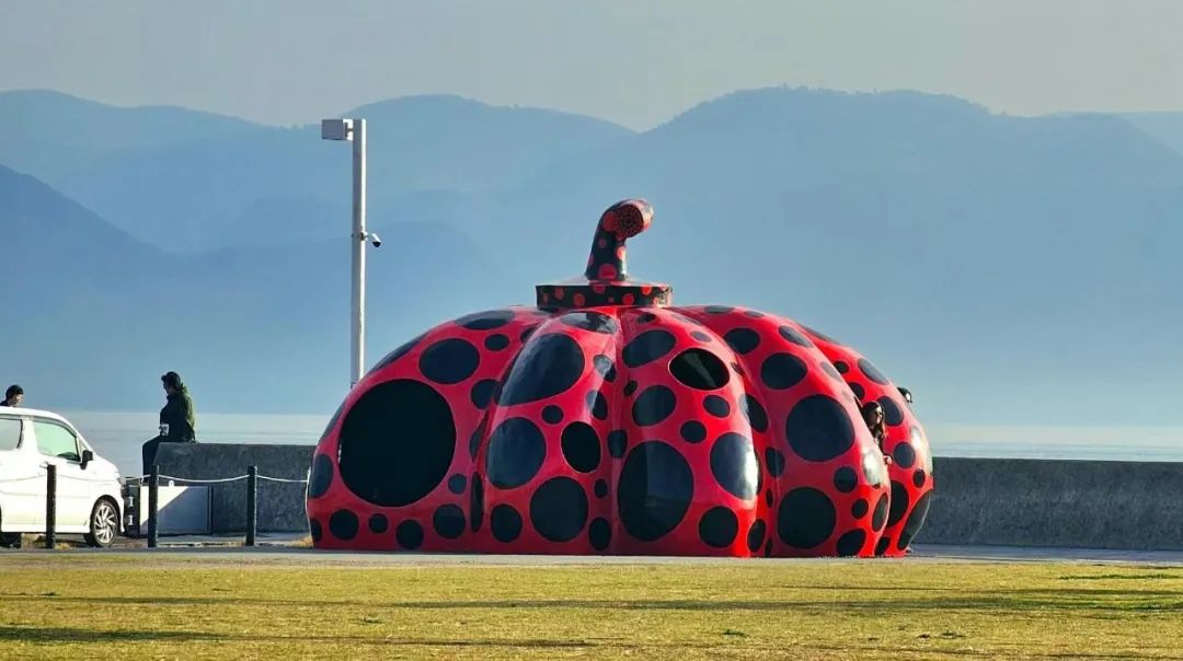 你在一个空荡小镇巷子里拐进某栋安藤忠雄的老屋,也会不经意间看到草间弥生的黄南瓜、红南瓜雕塑。