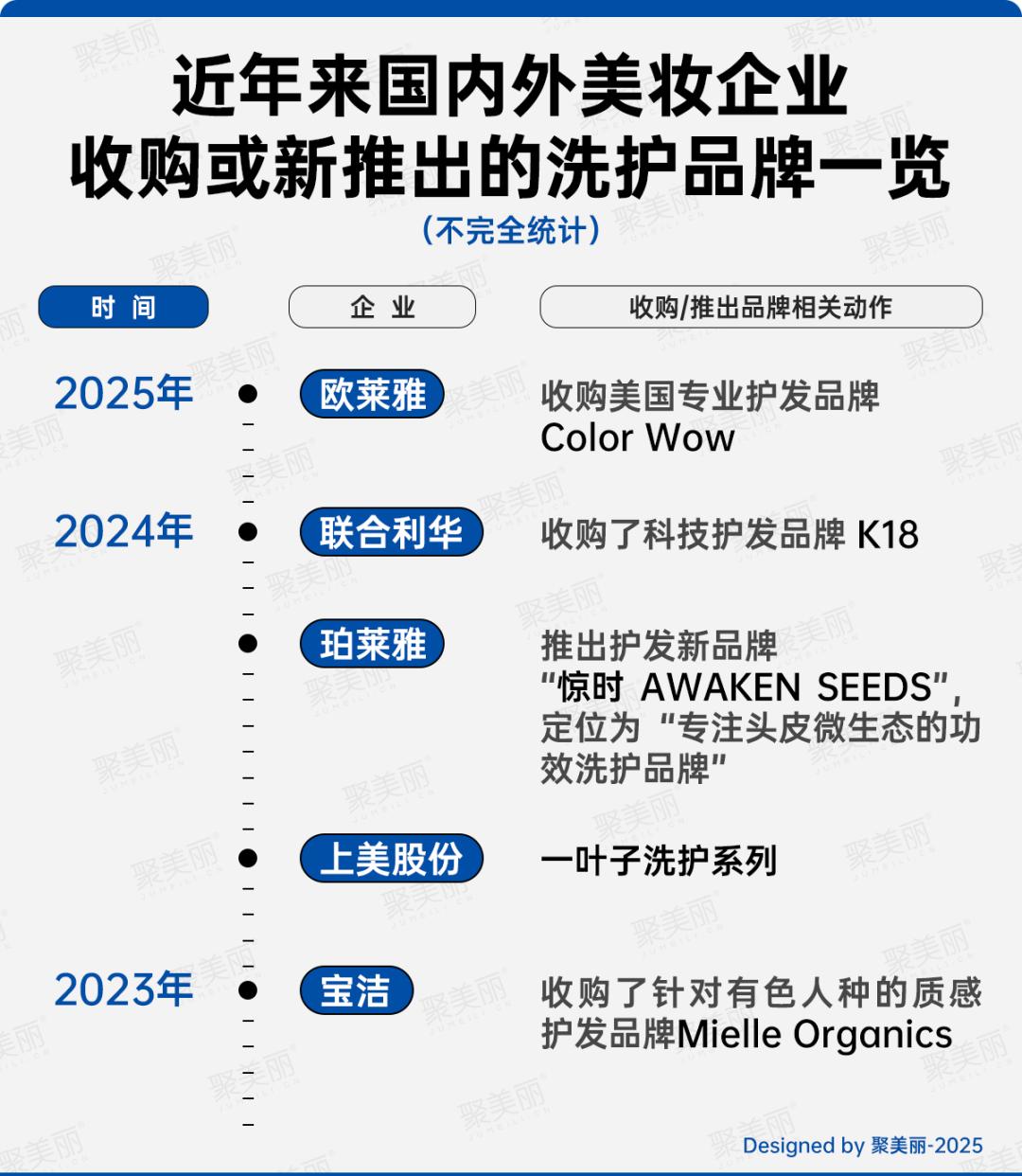 各大国内外的美妆企业针对洗护市场的狂热度不减,相继收购或推出相关品牌,如欧莱雅不久前刚刚收购了高端的护发品牌ColorWow;而国内企业也纷纷抢占布局,如珀莱雅在2024年推出护发新品牌“惊时”。