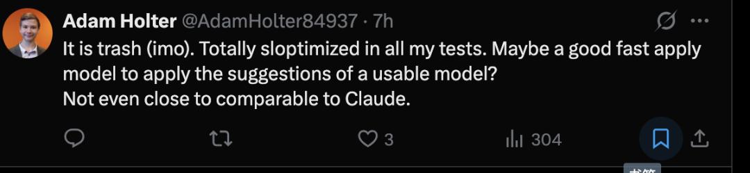 但也用户认为,这款模型非常糟糕,除了速度快基本一无是处,根本与 Claude 无法相提并论。