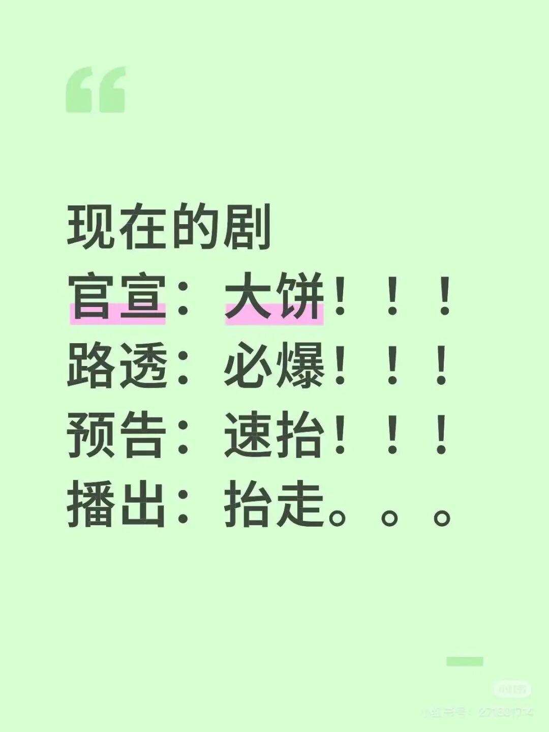 像一场预设好的营销大戏,从官宣到路透再到预告,每一步都是精心编排的“剧情节点”,目标是提前点燃市场热度,将观众的期待锁死在未播之前。剧集的命运,从诞生之初就被捆绑在这套宣传轨道上,疾驰驶向终点,容不得半点停顿。