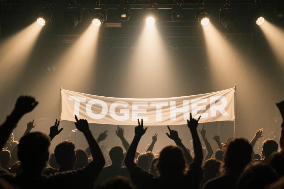 演唱会上,同为陌生人的大家因为喜欢同一个歌手而肩并肩站着,共享节奏与情绪。