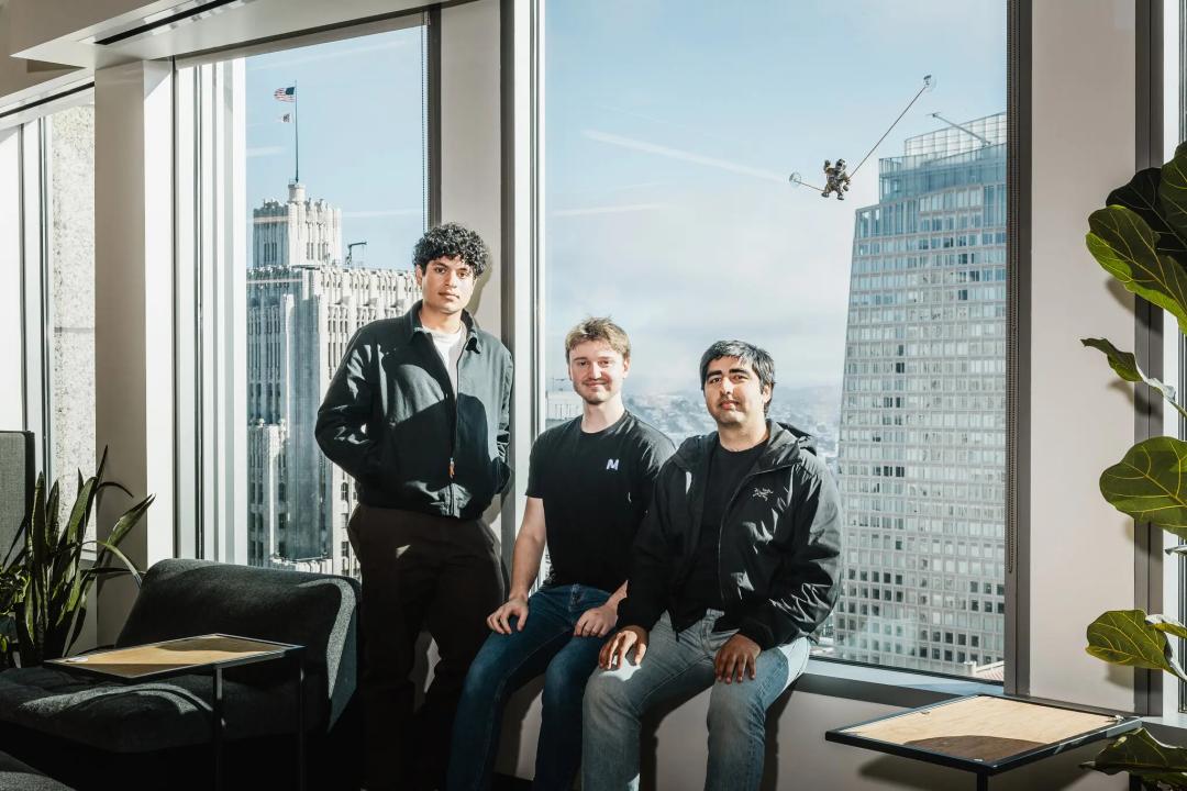 Mercor三位年轻的联合创始人,从左至右依次为Adarsh Hiremath、Brendan Foody、Surya Midha,他们曾是高中同学