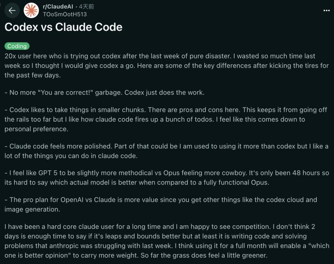 一位Claude Code资深开发者,在尝试Codex 48小时后,分别点评了它们的之间的差异: